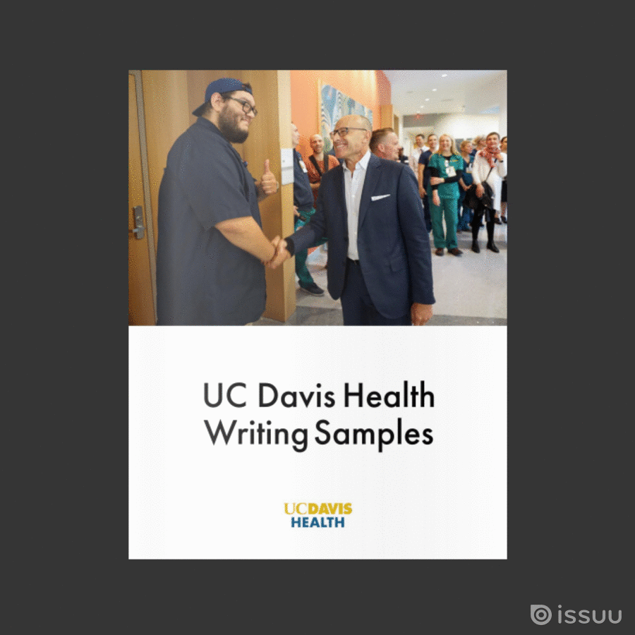 A sampling of magazine-style feature stories for the Insider, UC Davis Health’s intranet, as well as for the public-facing Newsroom.
